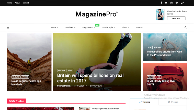 واحد من افضل قوالب ووردبريس للمواقع الترفيهية صمم قالب boombox خصيصا لمواقع الفيرال والمواقع الترفيهية. يحتوي القالب يحتوي القالب على العديد من الخصائص التي تجعله مناسب لمثل هذه النوعية من المواقع